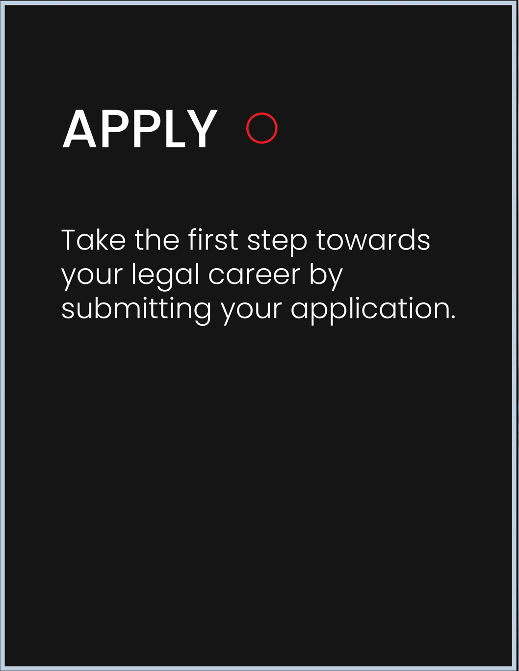 If you’re passionate about a career in law but unsure whether you meet every requirement, we encourage you to apply. We’re looking for potential, enthusiasm, and a willingness to learn just as much as prior experience.